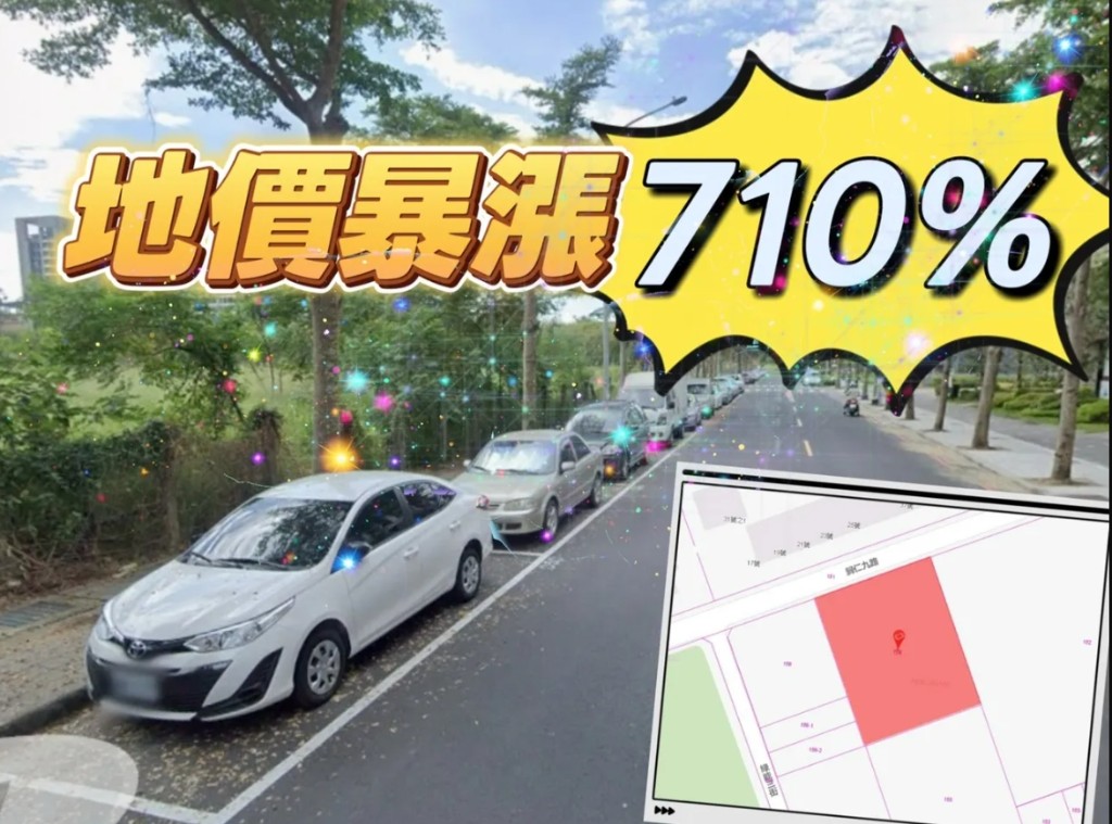 土地持有越久,隨建設到位地價跟著上漲,最新實登揭露達麗建設去年3月時以單坪53.6萬元,購入台南歸仁高鐵武東段154地號,也就是歸仁九路近綠能3街,1353.19坪住宅區地,成交額7億2531萬元,該筆土地在今年2月完成登記並後續實登,然而《壹蘋新聞網》調查,土地前任地主於2012年4月透過標售取得,當時得標金額單坪6.6萬元,總價8944萬5800元,換言之等於帳面大賺6億3586.42萬元,地價增幅710%。