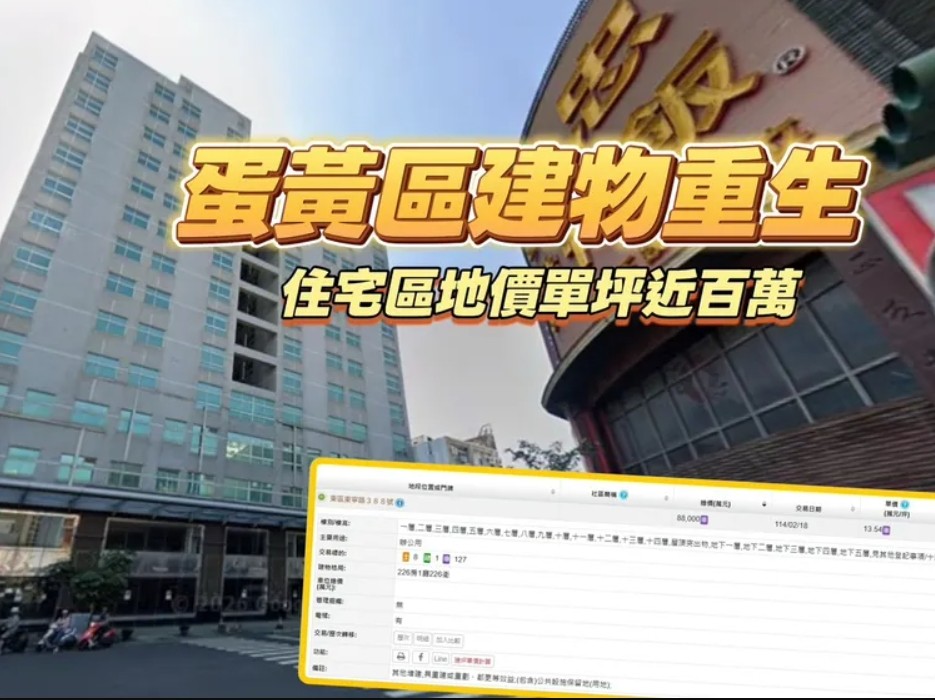實登揭露南市東區東寧路388號,一棟屋齡23年建築成交8.8億元,該地建物正是被台南人過去笑稱「史上最大爛尾飯店」,原名「中信永保安康酒店」,而地建物2023年曾開價10.5億元兜售,並已於2025年2月18日完成實登,地坪897坪,建坪6499.3坪,買方登記「南科聯合興業」。