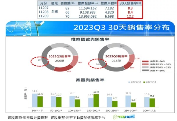 國泰房產地產日前發布今年第三季指數顯示,第三季全國新案30天銷售率呈現「躺平」,7月僅8.3%、8月8.4%,9月也僅12.2%,平均新案開案30天內賣不到一成。