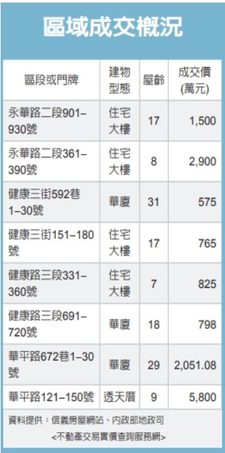 以屋齡20至30年的中古大樓為例,五年前的行情每坪單價約在9萬至13萬元,目前則已拉高達18萬至24萬元,漲幅約一倍有餘;新成屋開價更是超過每坪30多萬元。