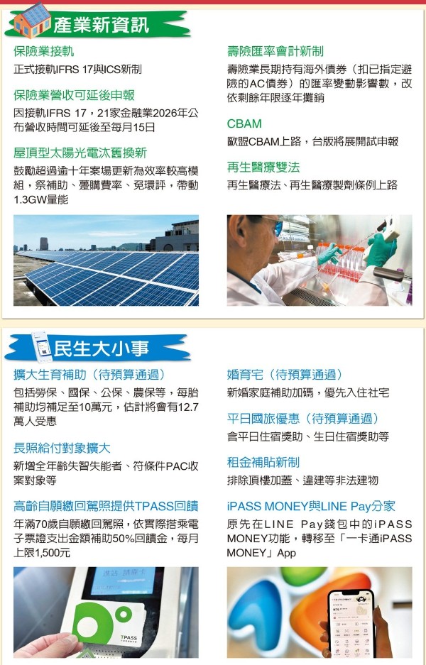 發佈: 8 小時前 點閱: 97 2026年元旦有多項新制上路,包括稅制、勞工權益、產業面、民生消費等。民眾小確幸像是基本生活費調升,但也要留意租金補貼排除頂樓加蓋、違建等非法建物的相關新制。 資料來源: 經濟日報 ★ 本文章為善意分享,若有不妥之處請通知,將立即下架刪除。