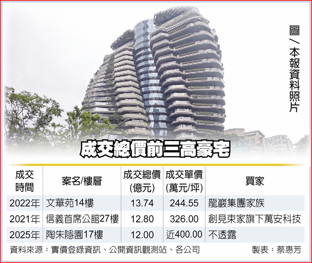 圖   成交總價前三高豪宅