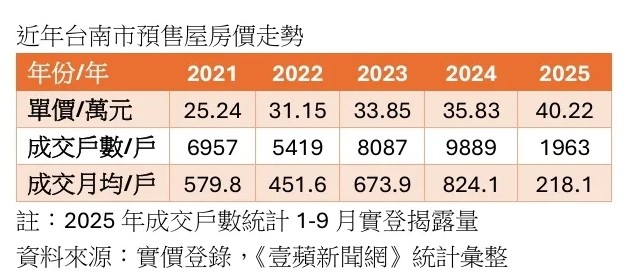 圖   台南預售屋價量統計