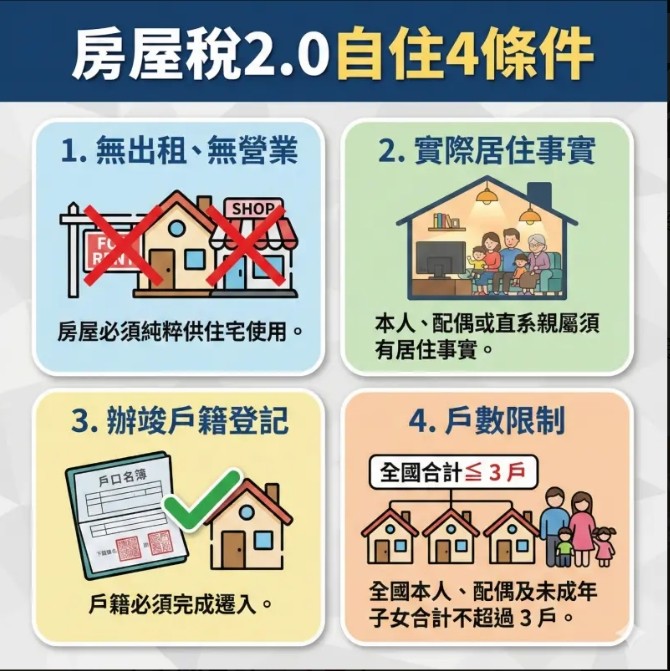 房屋稅 2.0 趨嚴:自住認定「四條件」缺一不可